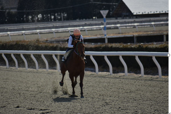 1月29日に行われた第1回修了実技試験では、単騎(一頭)での発走から追い込みを行いました。