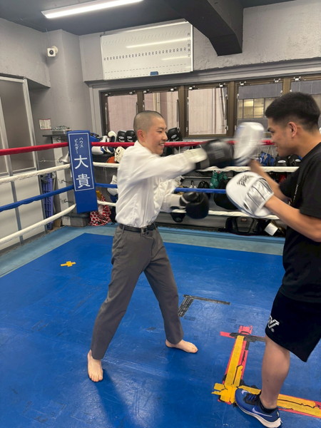 基本的なジャブとストレートのやり方を教わり、一人ずつ実戦形式でボクシングの先生にパンチを当てる試合をしました。