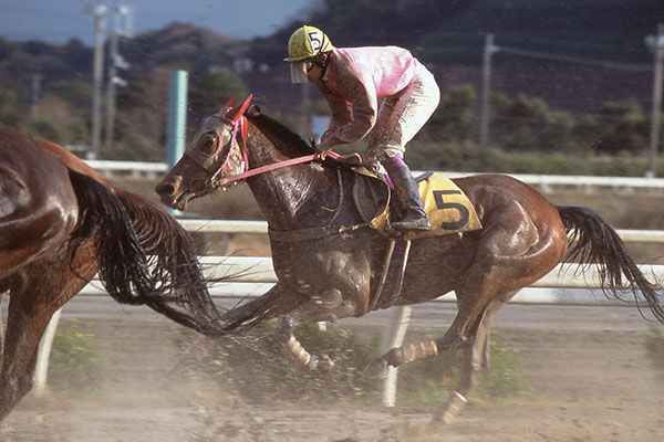 ハルウララは1996年生まれ(父ニッポーテイオー)、98年11月に高知競馬でデビュー(5頭立5着)。以降も勝てないレースが続き(最高着順2着)、03年12月には100連敗を喫したが、負け続けてもひたむきに走る姿が人気を集め、翌04年3月には武豊騎手(JRA)が同馬に騎乗し、1万3千名あまりのお客様が高知競馬場に押し寄せました。最終的に04年8月のレースを最後に引退。生涯成績は113戦0勝でした。