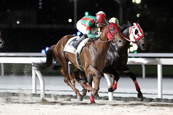 ダート1,800mで行われた第2戦は、横山琉人騎手(JRA)騎乗のファイアーサインが直線半ばで先頭に並びかけ、力強く抜け出し勝利。2着は石田拓郎騎手(JRA)騎乗のミヤビモルタル、3着には神尾香澄騎手(川崎)騎乗のエクメディノキセキが入りました。