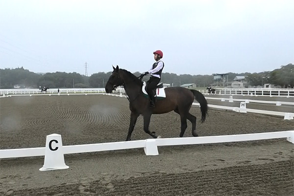 今後の課題としては、体を起こしハミを受けさせて馬をコントロールしたいです。