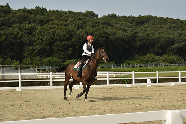 練習では速歩のところで駈歩になってしまったりしていたけど本番では落ち着いて走行することが出来たので良かったです。