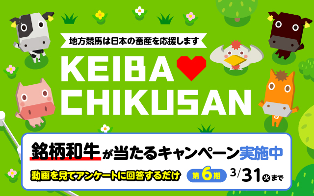 第1期から第5期まで、たくさんのご応募をいただいたKEIBA♡CHIKUSANキャンペーンのラストとなる第6期が、本日2月2日(月)より開始します!