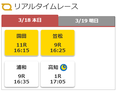 トップページにレースタイムラインを設置し、アクセス時点から実施される競走順に並んで表示されるようになります。